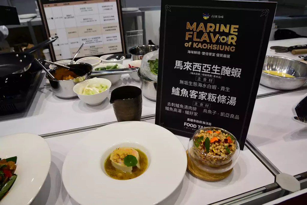 自 2022 年《米其林指南》高雄納入評鑑後,掀起高級飲食 Fine Dining 熱潮,更讓饕客、美食家皆有感,以此可窺見高雄在地漁獲食材多樣性與餐飲創意的豐沛量能。高雄市政府海洋局攜手5家業者於南港展覽2館4樓國家館共同參展行銷,專區以「海味餐酒館風格」呈現,主打精選高雄海味水產品外,更結合多位北高知名主廚,推出台北食品展限定10道高雄海味主廚餐桌系列料理。26日開幕特邀請到台北W飯店許政堂及高雄Ça marche薩瑪法國小館廖冠宇兩位極富才華的主廚,以「雙主廚料理秀」呈現一場色香味極致的正港海味體驗,香味四溢,與會來賓讚不絕口。